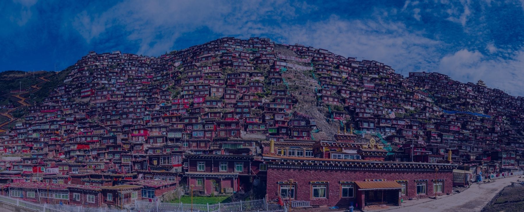 色達喇榮五明佛學院,是全球規模最大的藏傳佛學院,也是當今世界藏傳佛教修行最重要的聚集地之一。「喇榮」是山谷的名字,「五明」指佛學院以聲明、工巧明、醫方明、因明、內明五大學科為核心教學體系。整座學院依山而建,數萬間絳紅色木屋層層疊疊鋪滿山谷,與金頂殿宇交相輝映,構成震撼人心的「紅色佛國」景象。